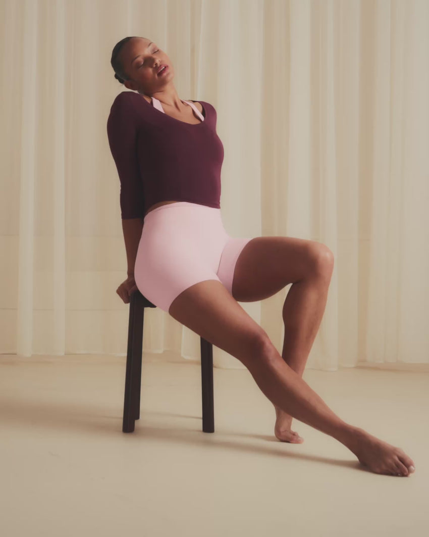 | High-waisted, non-compressive shorts | |